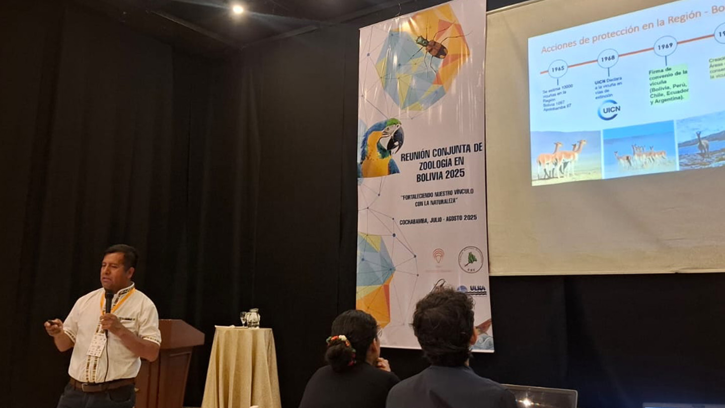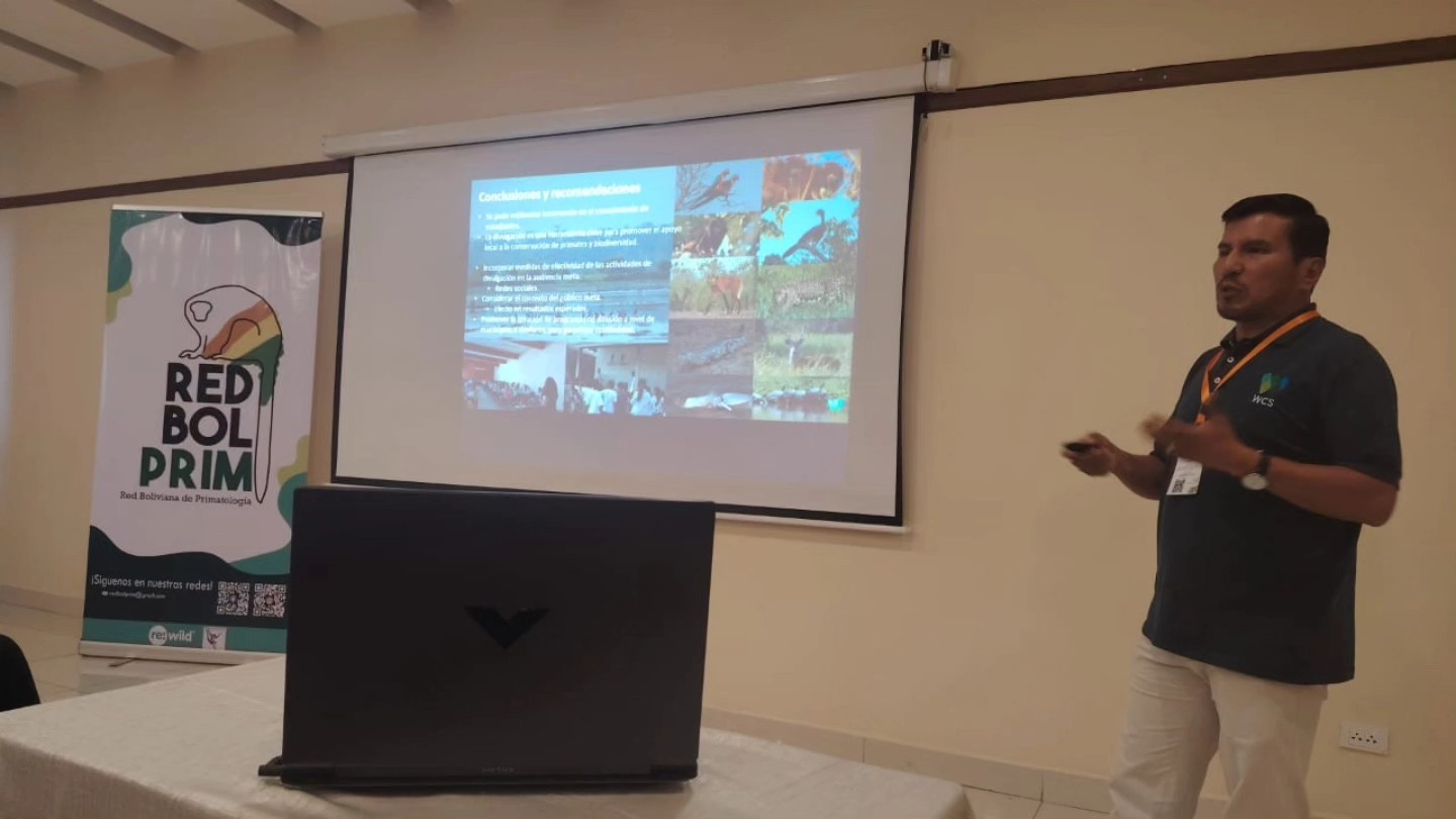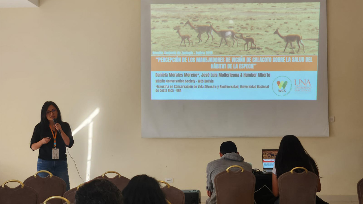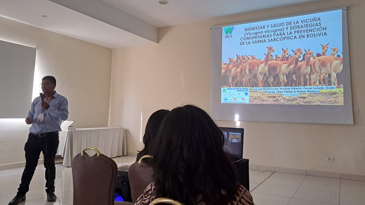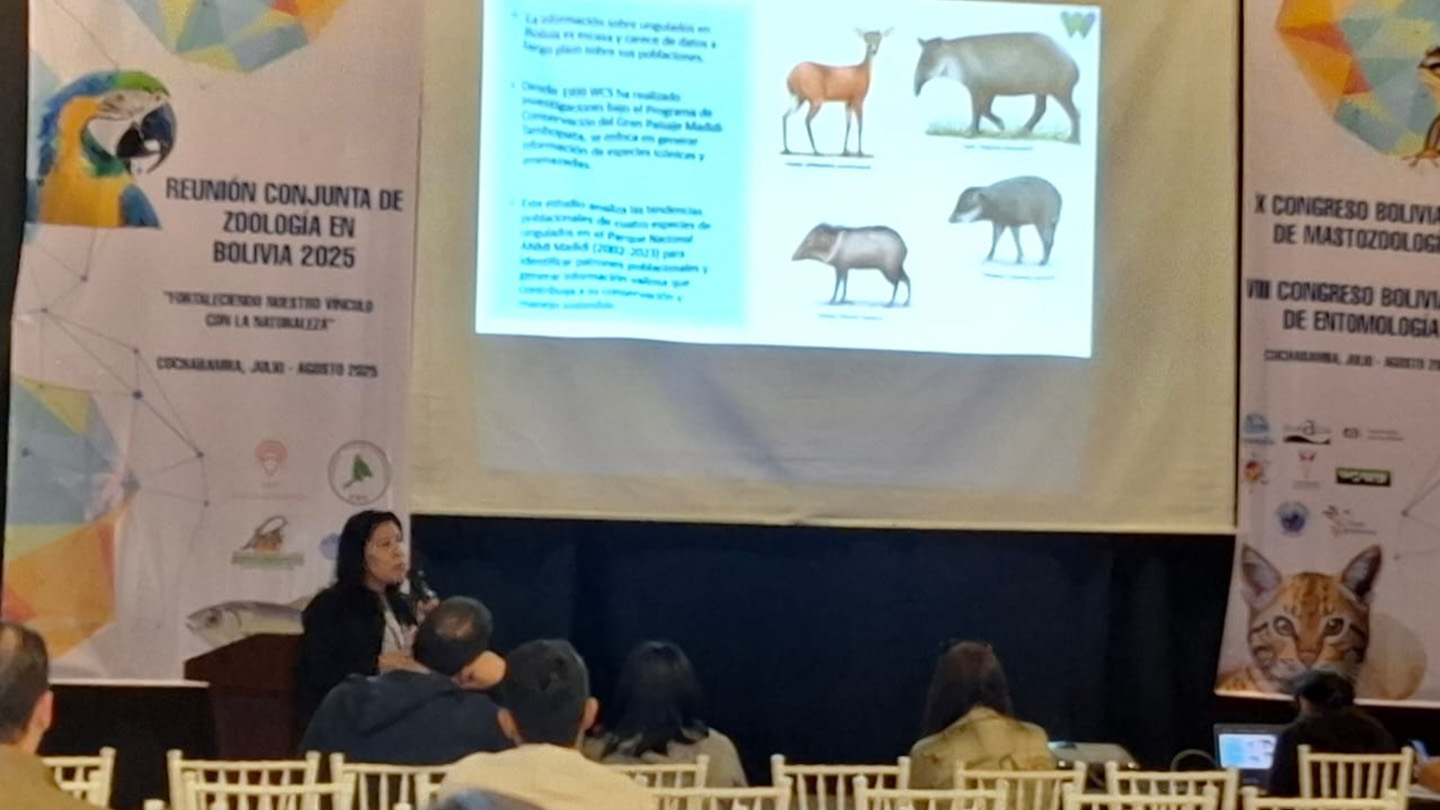 Especialistas de Wildlife Conservation Society (WCS) Bolivia participan en la Reunión Conjunta de Zoología en Bolivia 2025 en Cochabamba, del 29 de julio al 1° de agosto. Este evento convoca a estudiantes, académicos, técnicos y profesionales de distintas disciplinas vinculadas al estudio, gestión y conservación de la fauna boliviana a través de resultados de investigación o acción aplicada sobre la fauna silvestre desde enfoques científicos, comunitarios, educativos y artísticos. Las presentaciones de WCS Bolivia incluyen una variedad de investigaciones y experiencias que abarcan desde estudios de monitoreo a largo plazohasta evaluaciones de amenazas emergentes.