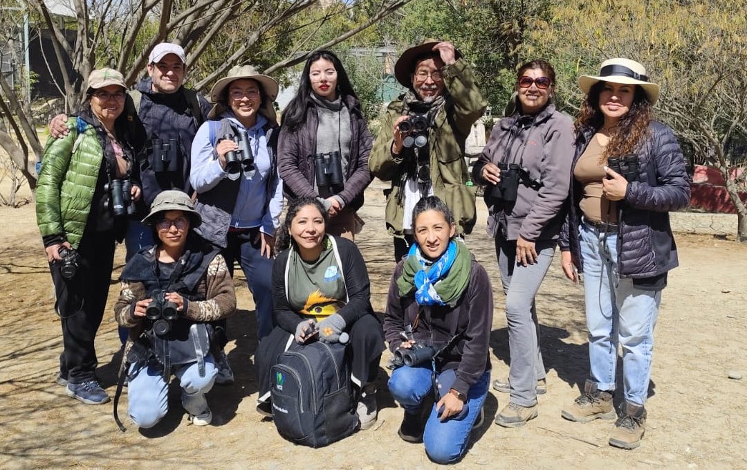 En cada salida, los nuevos avistadores contaron con el acompañamiento de especialistas en aves, quienes compartieron sus conocimientos y experiencias, lo cual hizo que esta actividad fuera aún más enriquecedora. Entre los capacitadores estuvieron Isabel Gómez (Aves Bolivianas), Daniela Morales (WCS y Sociedad de Ornitología Neotropical) y Alberto Espinoza (ALWA).